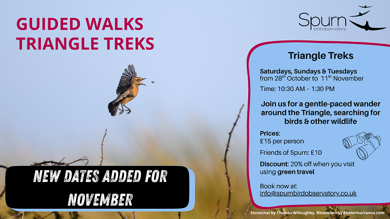To book your place on any of the guided walks, please email: accommodation.spurnbirdobs@hotmail.com